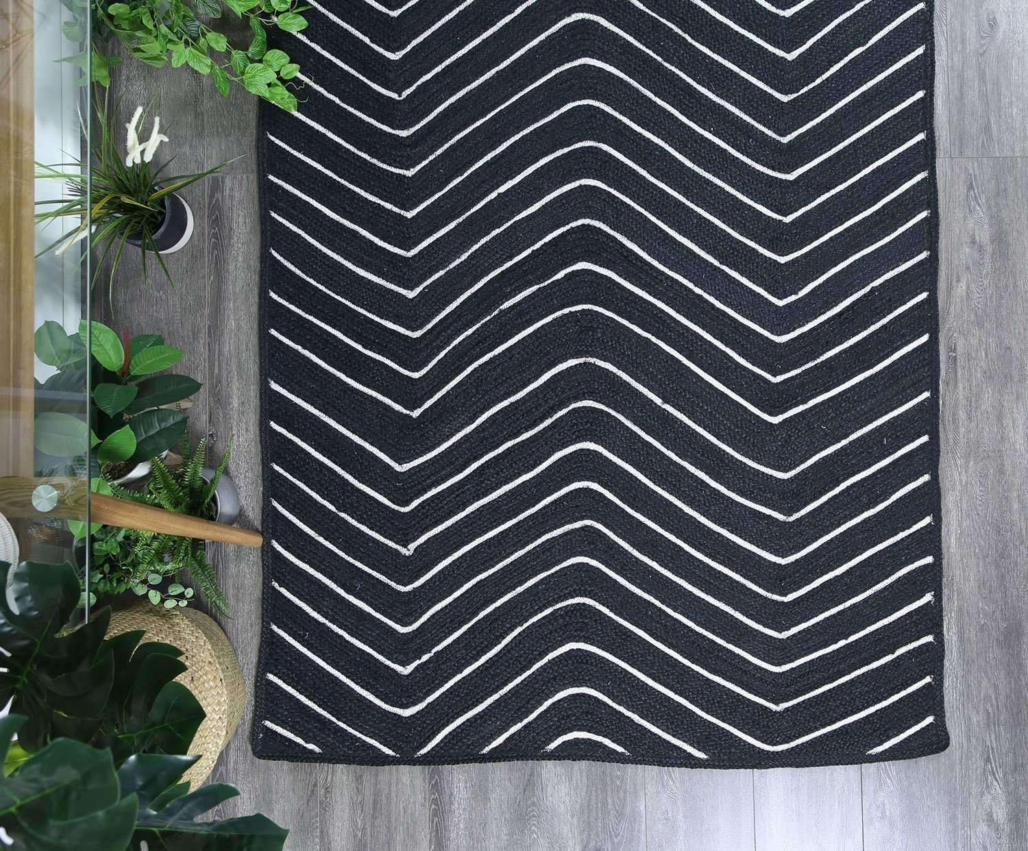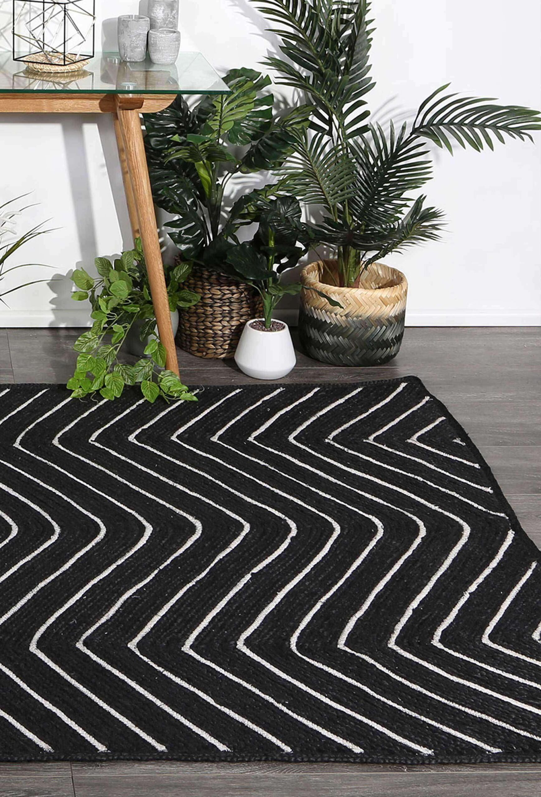 Cameron Natural Chevron Black Rug