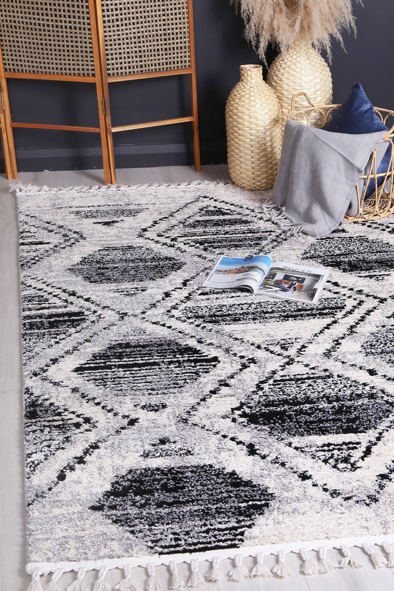 Cassandra Black White Diamond Rug