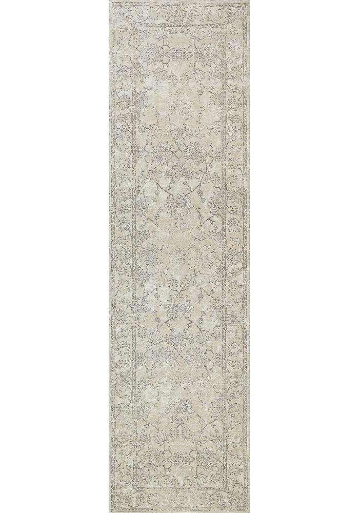 Classic Whimsical Boarder Beige Distressed Runner Rug
