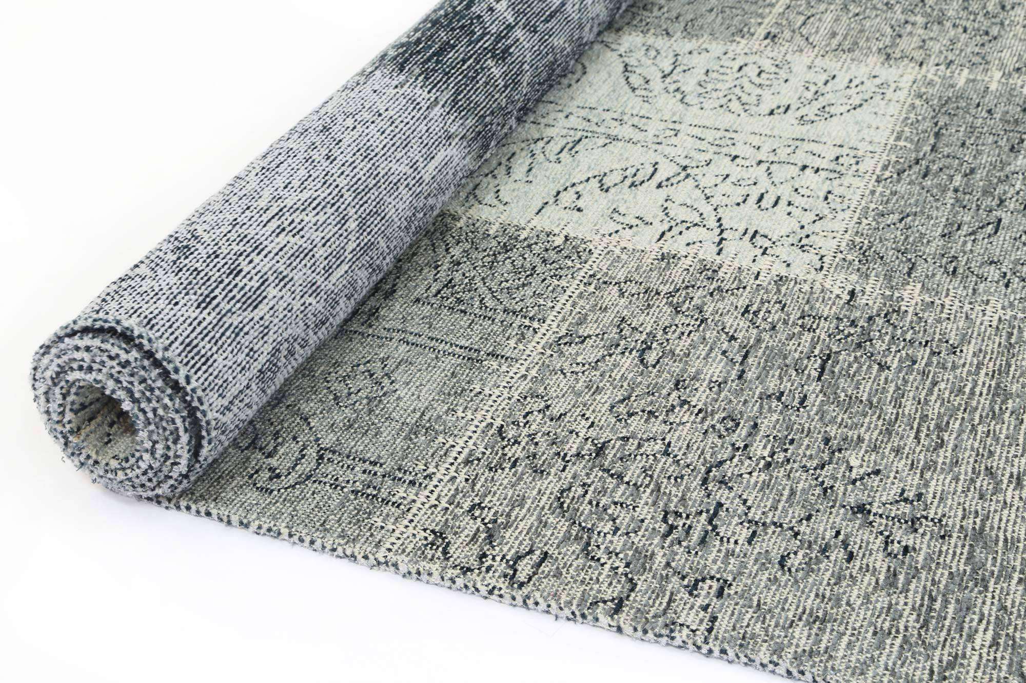 Classic Whimsical Patchwork Grey Distressed Runner Rug
