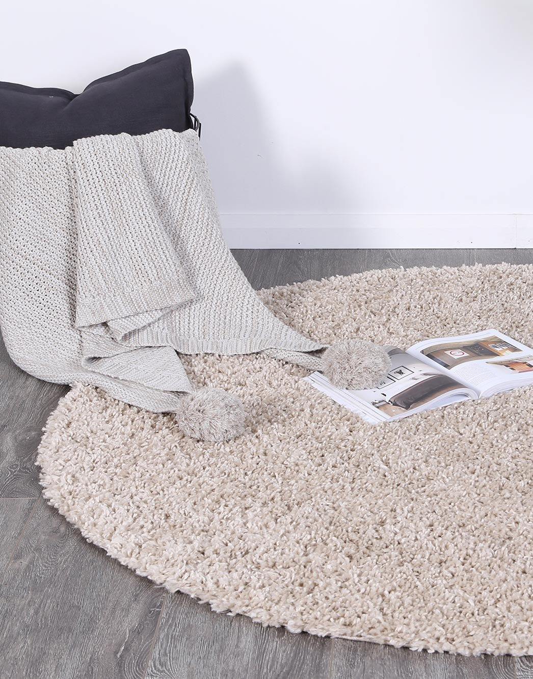 Danso Shaggy Beige Round Rug