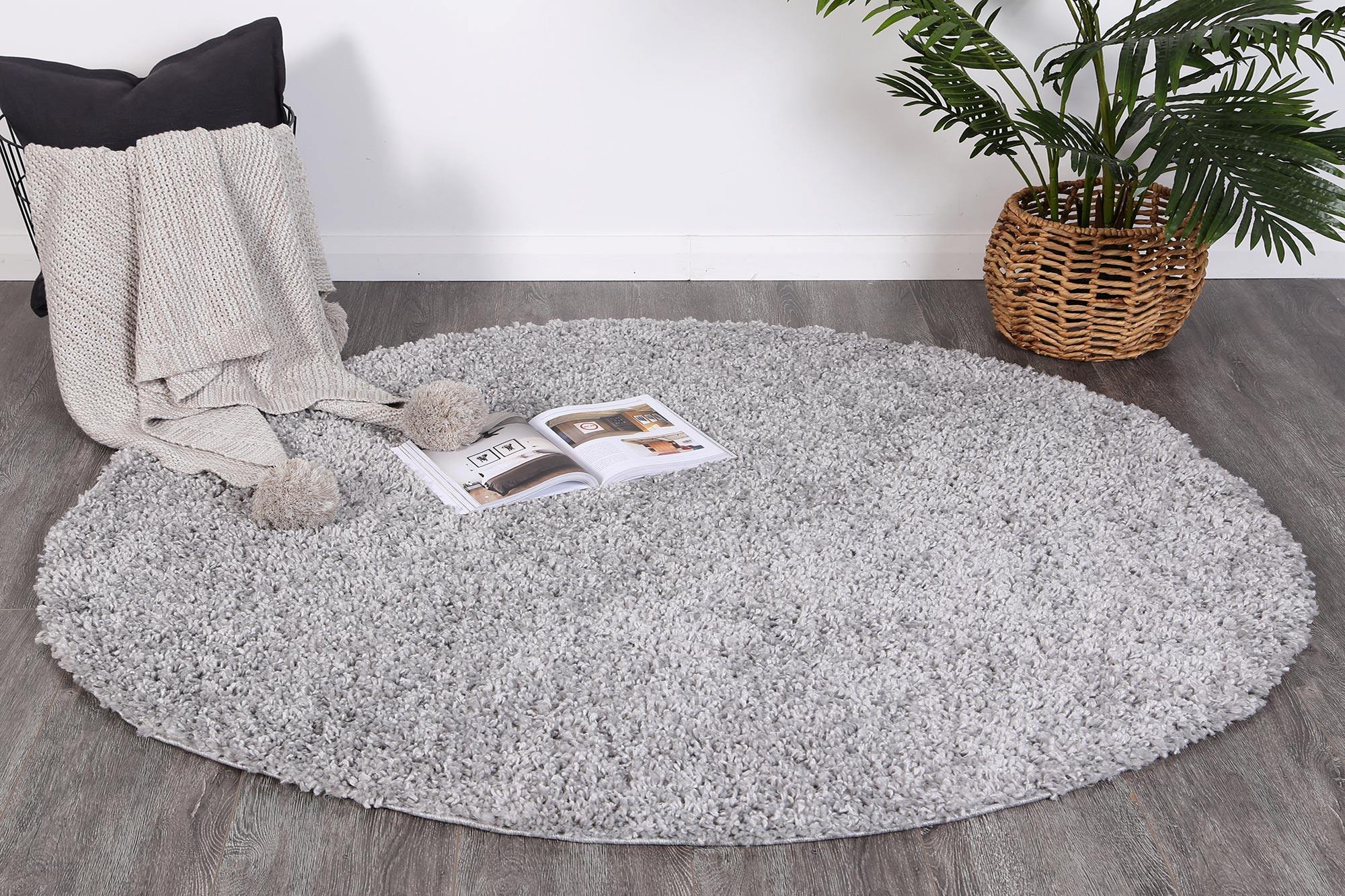 Danso Shaggy Silver Grey Round Rug