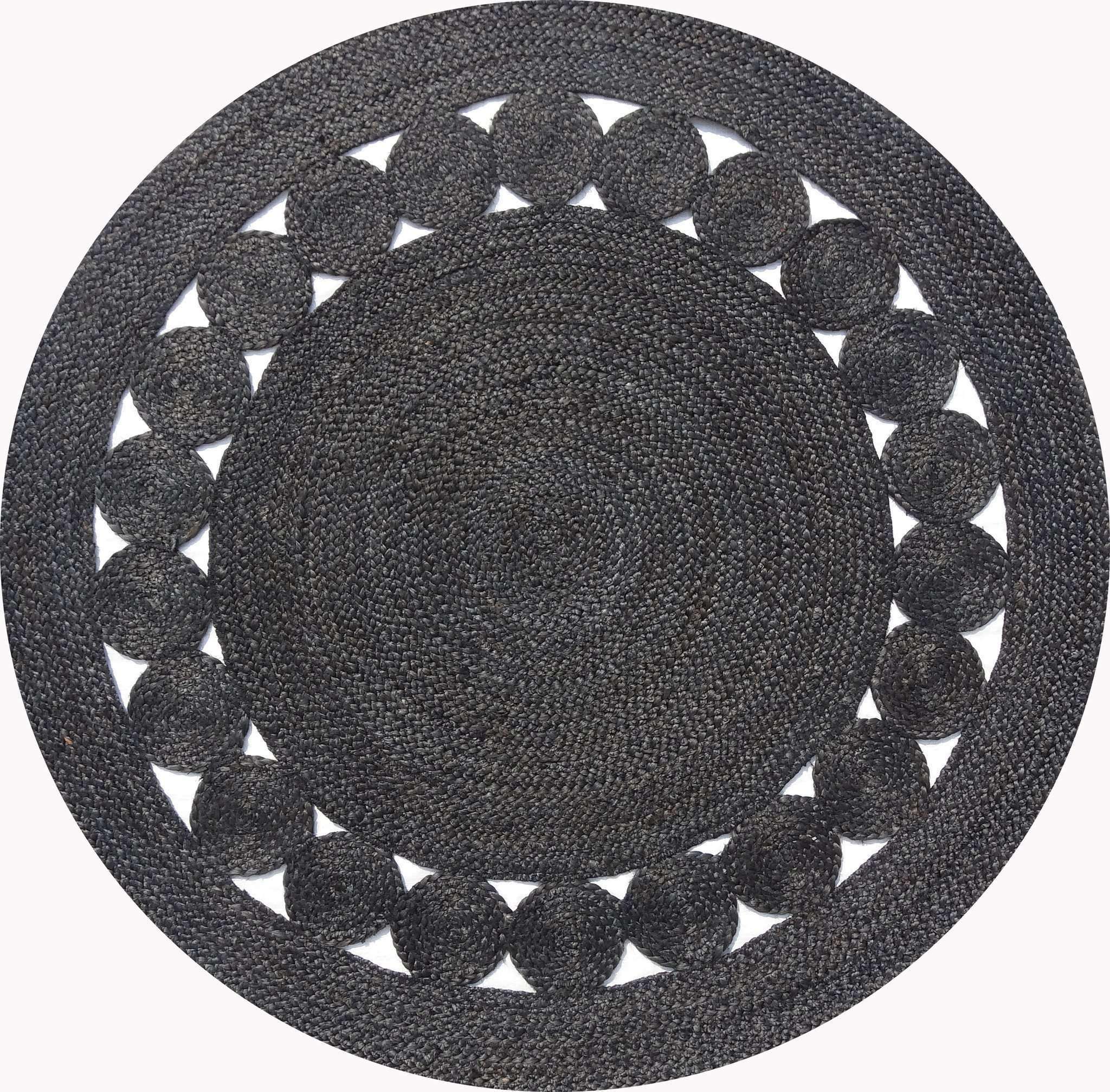 Dot Rose Jute Round Black Rug