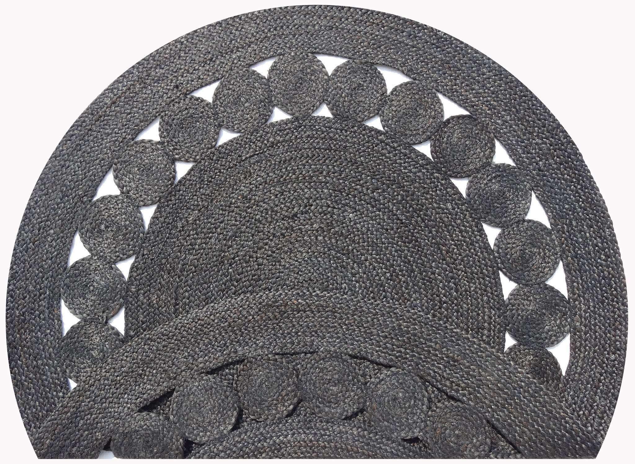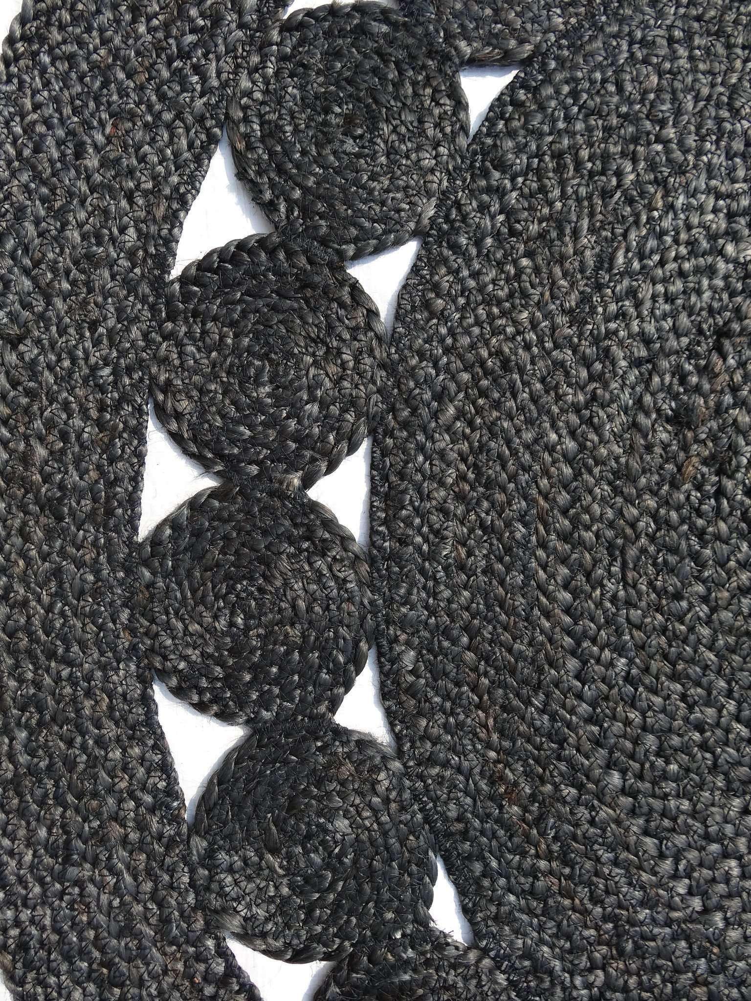 A round centre-piece with natural interior bordered with light brown hue which is truly eye catching, the Dot Rose Black rug is made from 100% natural fiber rug hand braided from Indian jute, in a variety of colours & sizes. Hand Braided by skilled craftspeople, and therefore unique. This classic natural fibre rug is a must-have for an eco-friendly household. The strong fibres make this rug durable enough for high traffic areas.