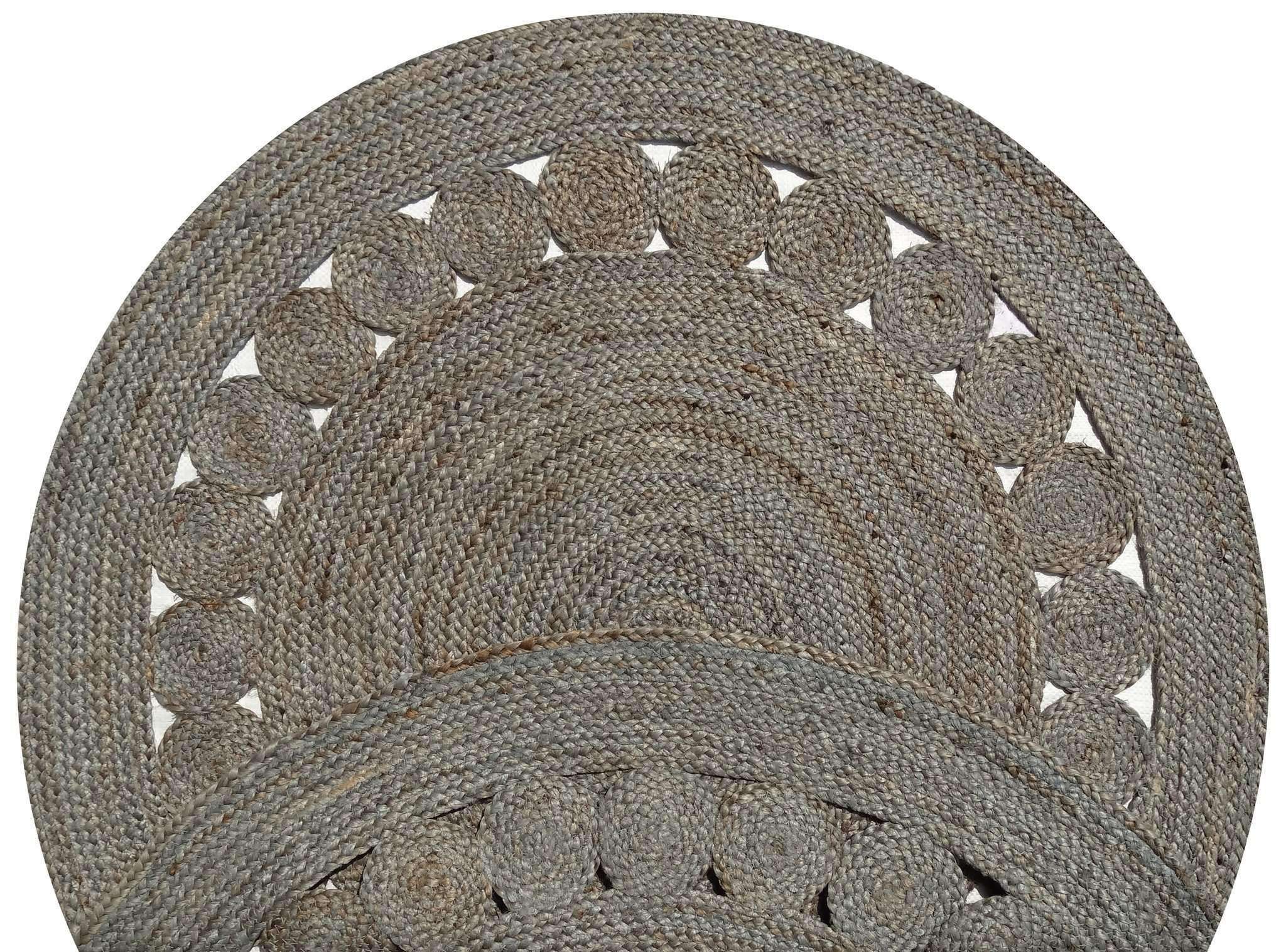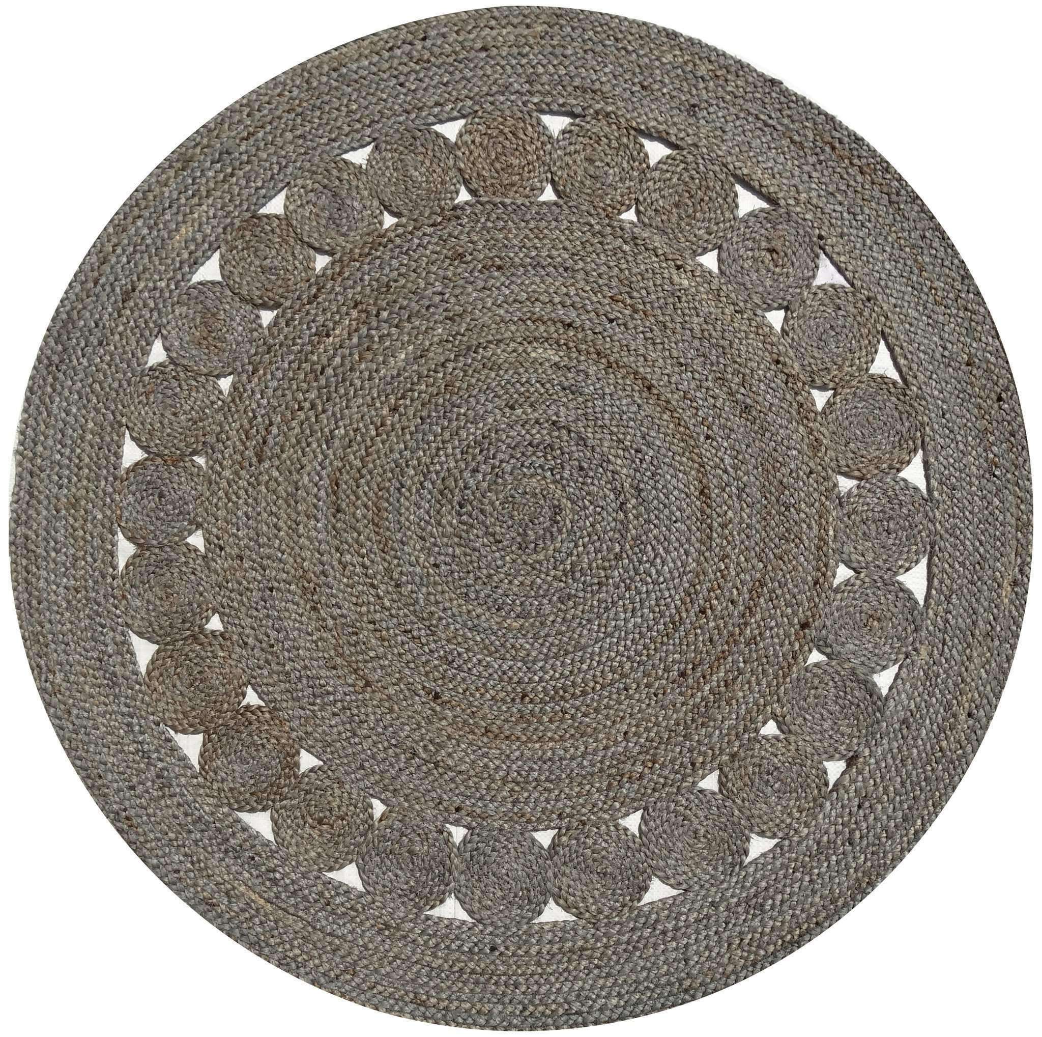 Dot Rose Jute Round Grey Rug