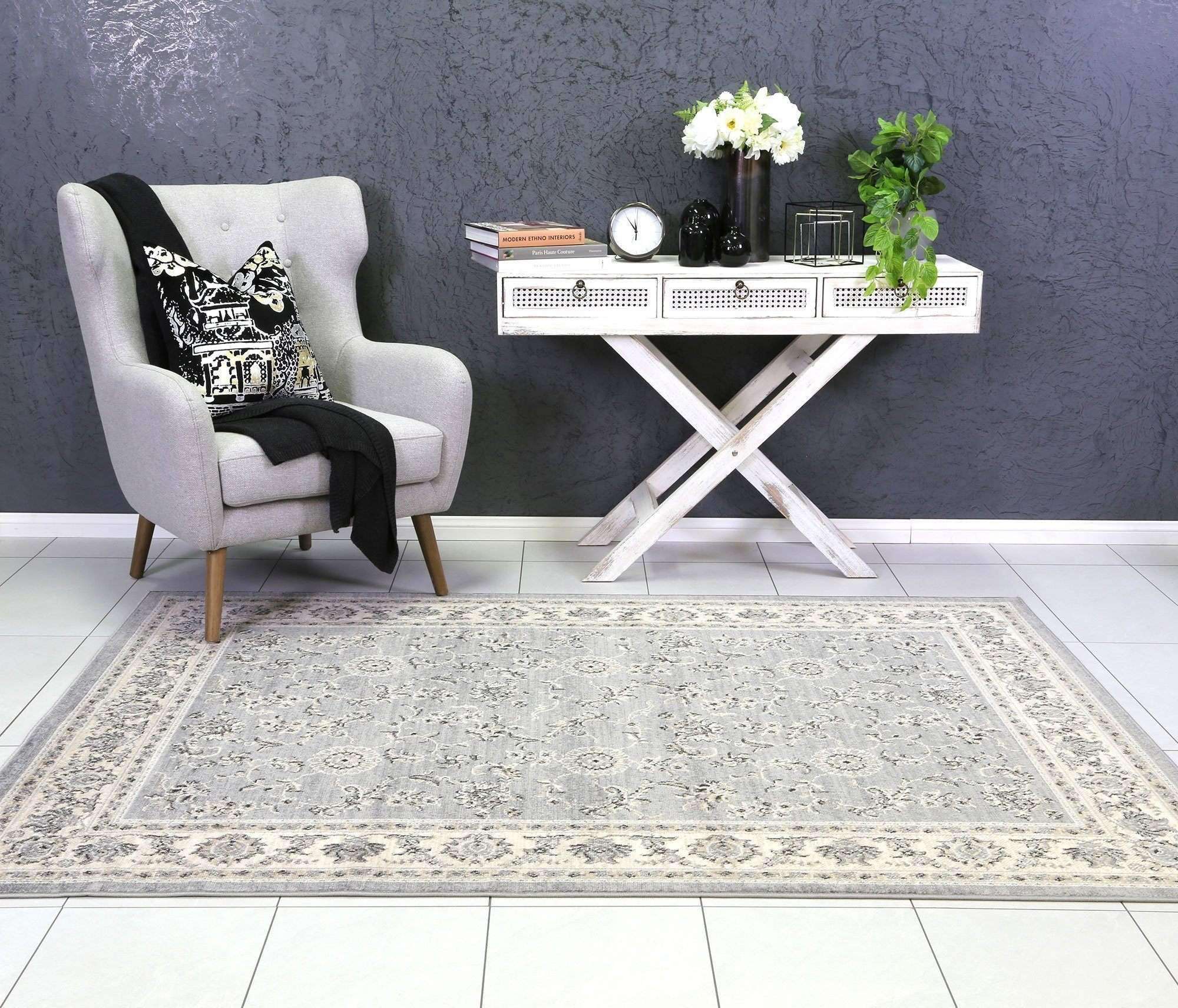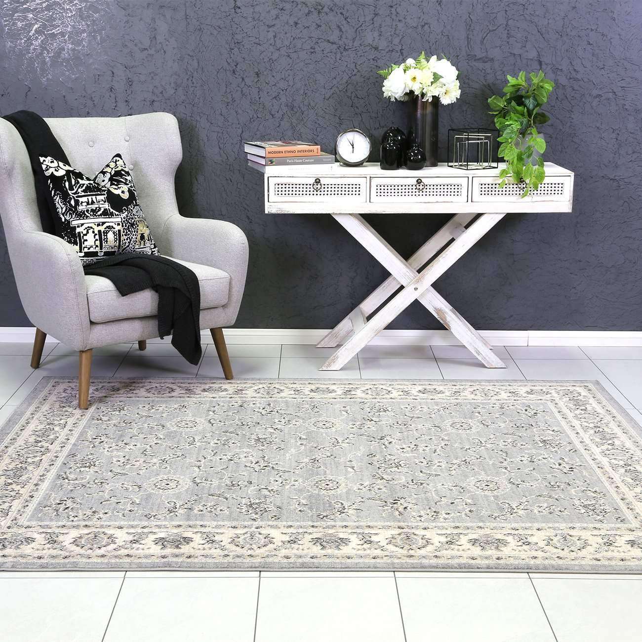 Eden Grey and Cream Traditional Boarder Rug