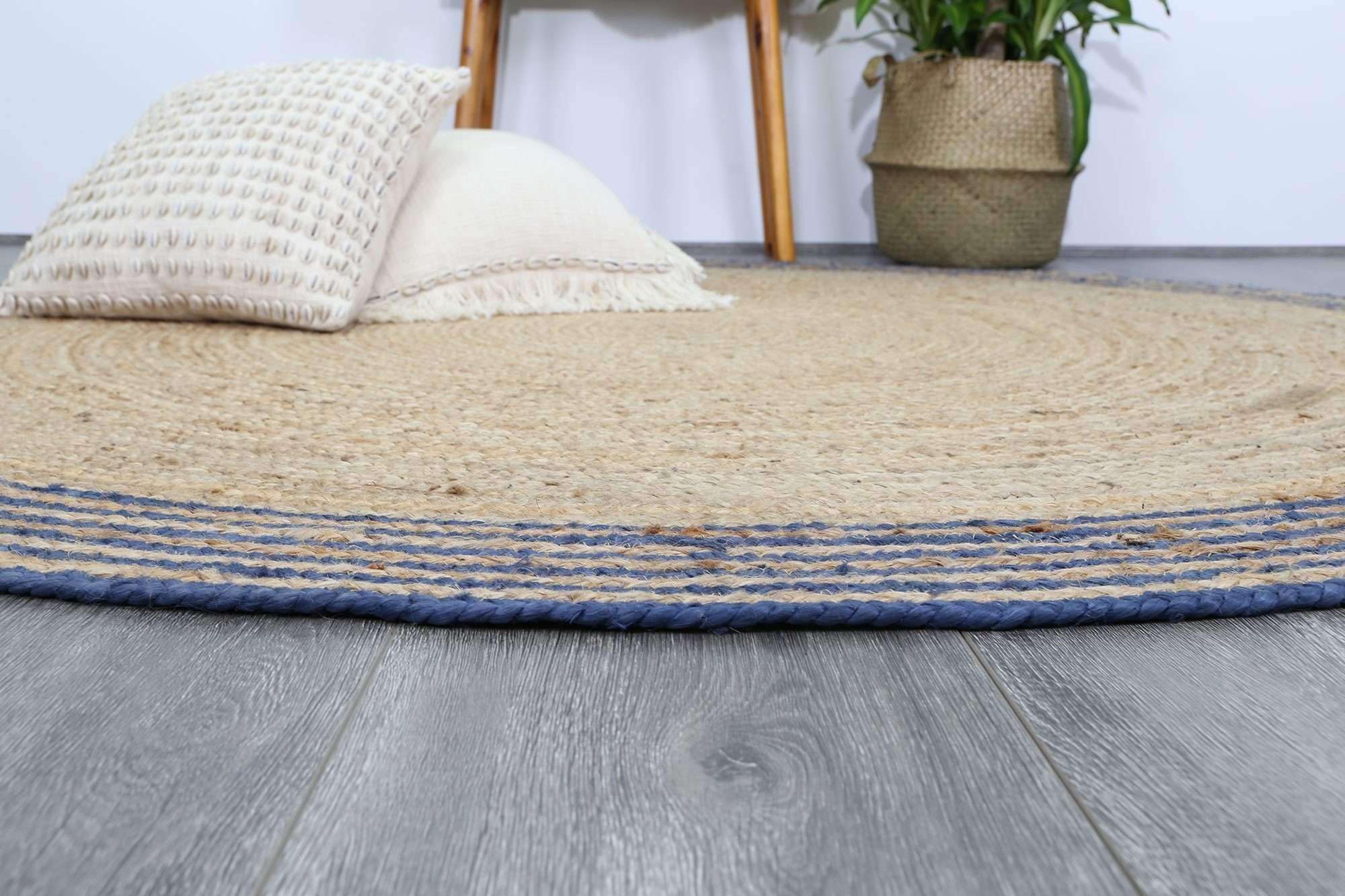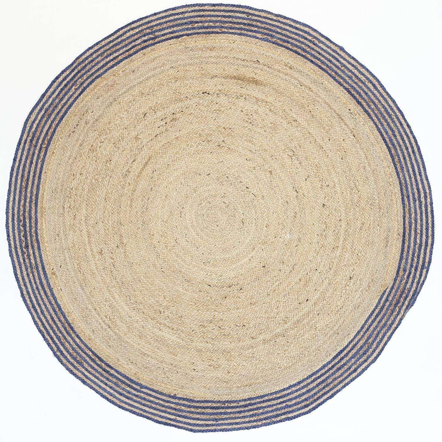 Faro Natural Round Navy Border Rug