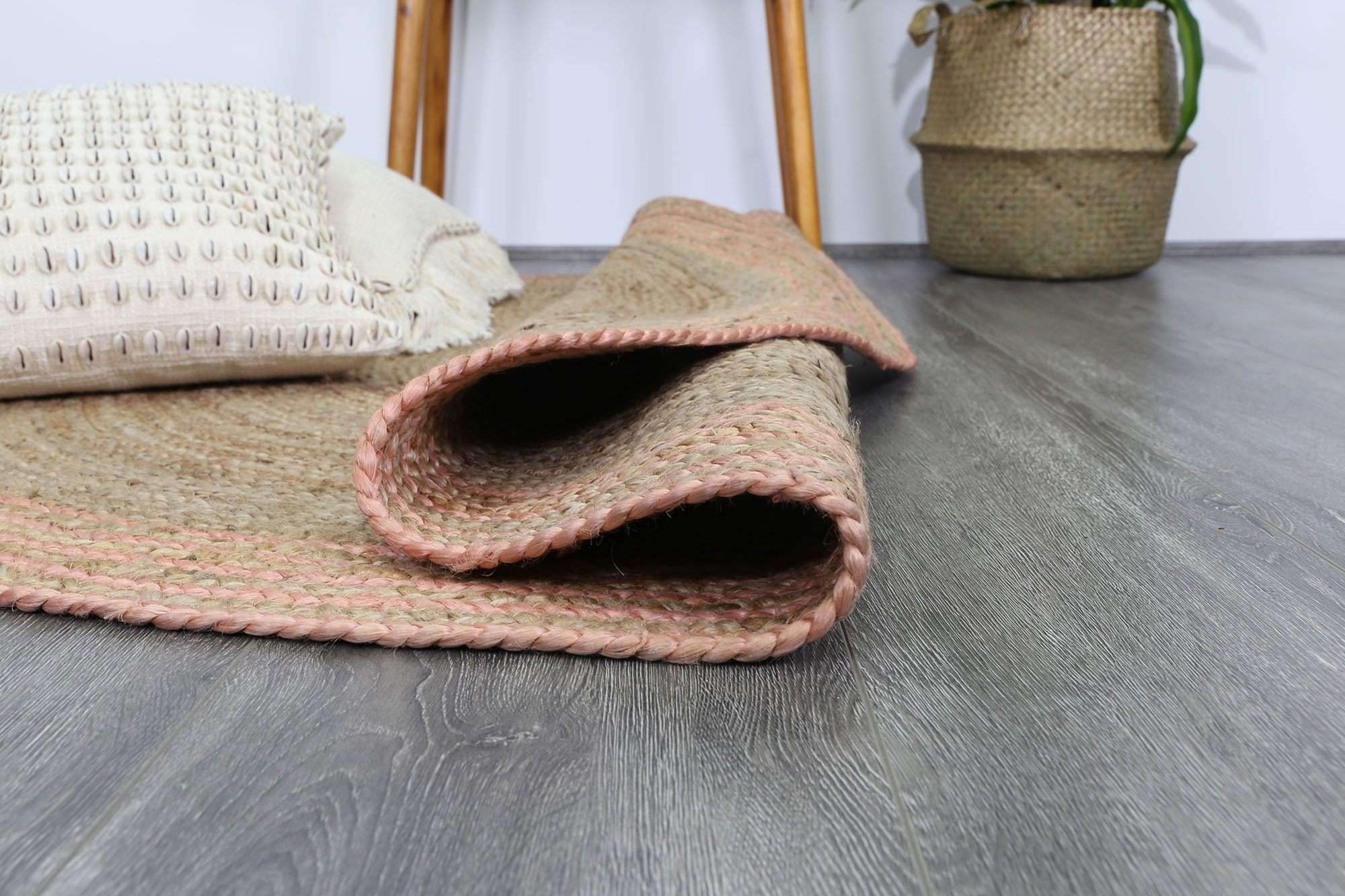 Faro Natural Round Pink Border Rug