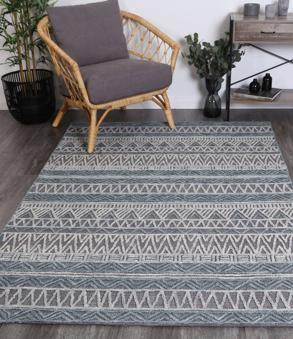 Hayes Tribal Dark Grey Teal Rug
