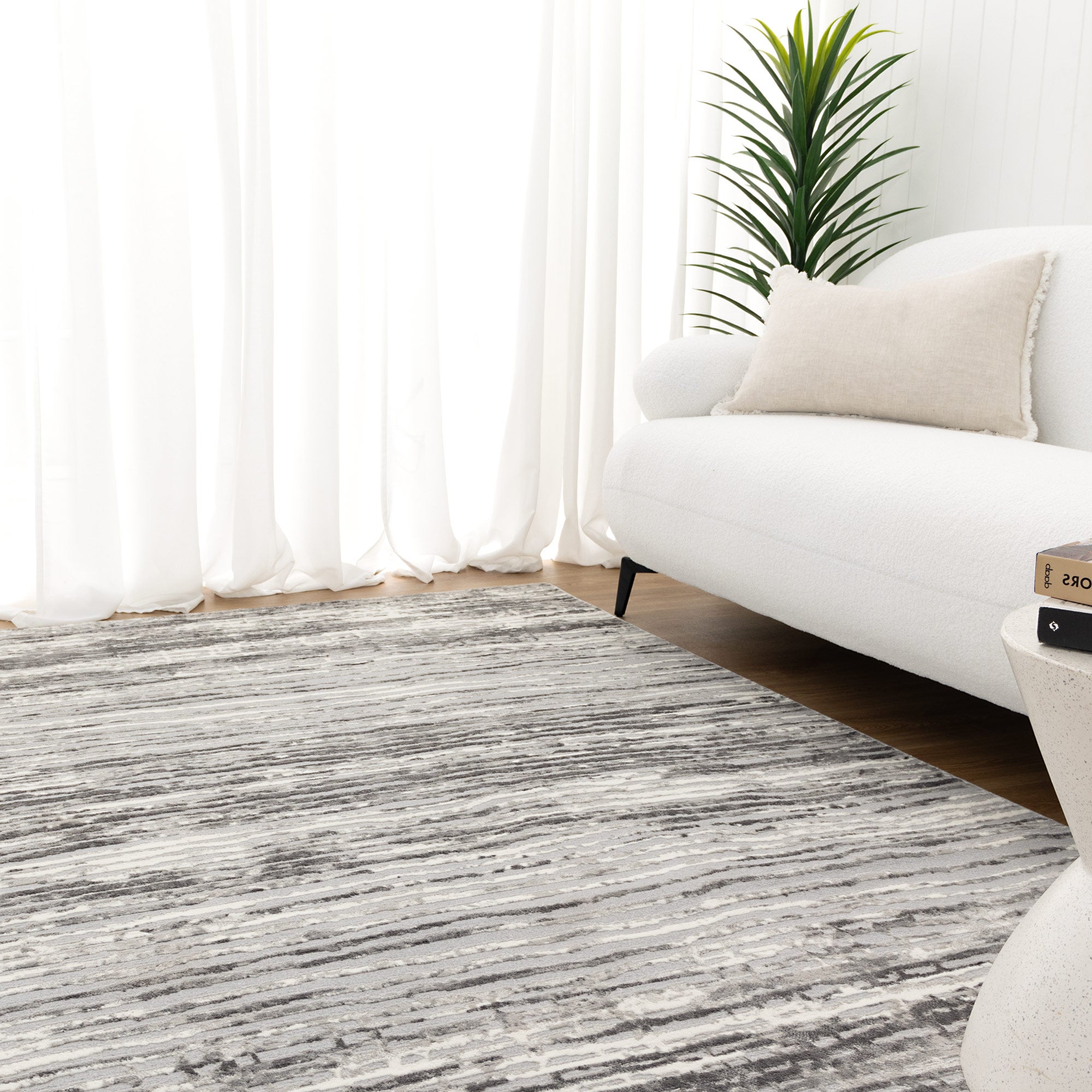 Luna Distressed Lines Grey Rug