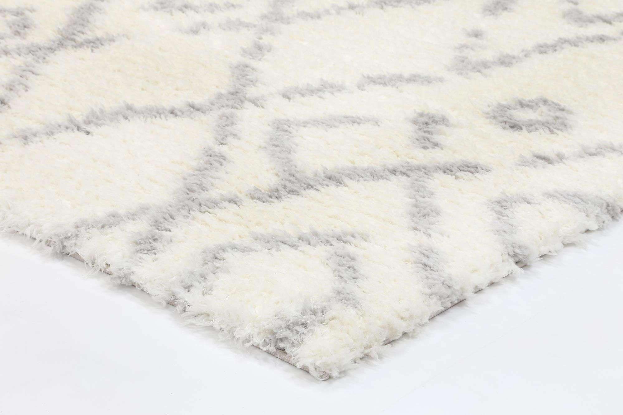Moroccan Tribal Fes Pattern Cream Silver Rug