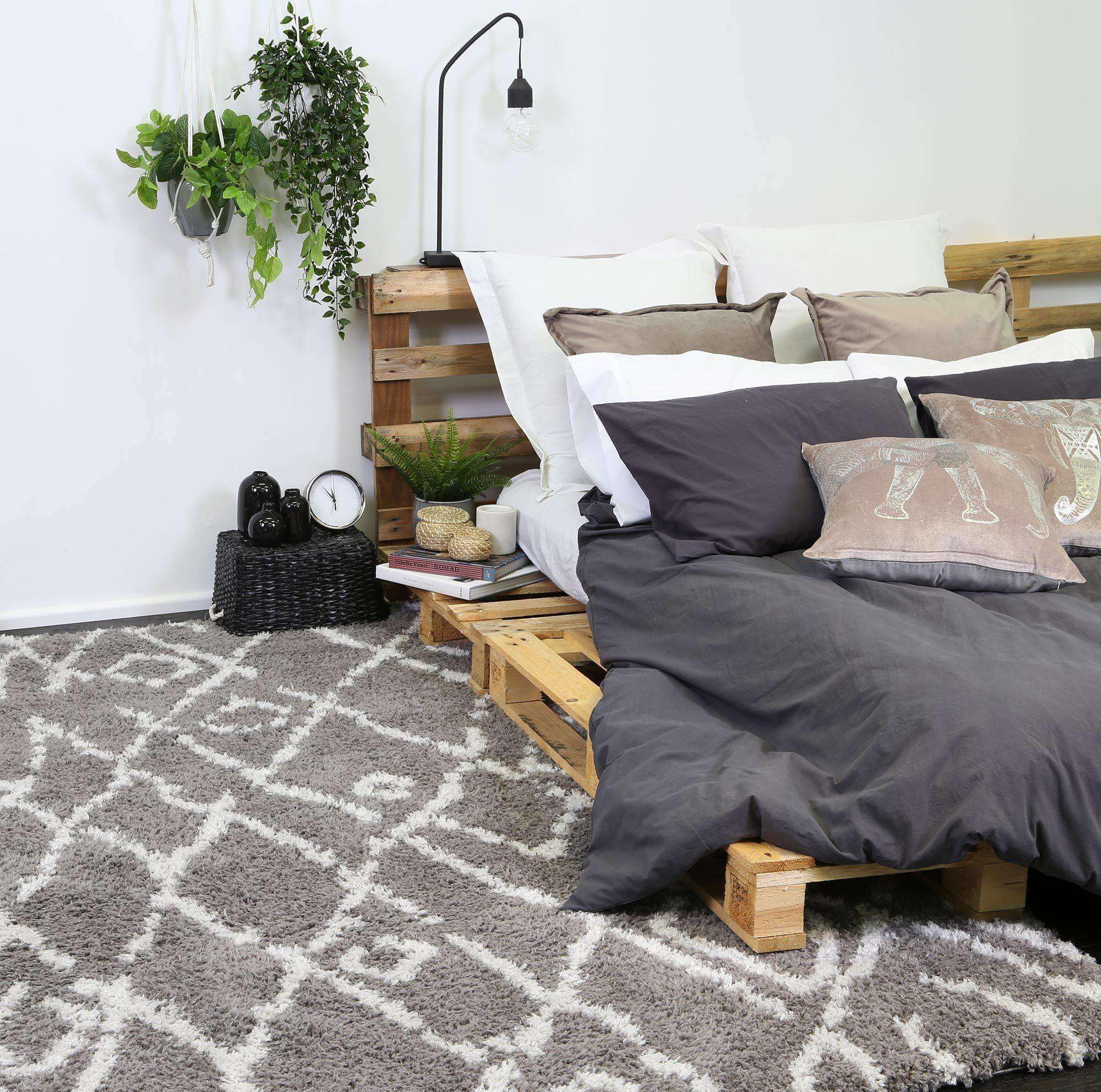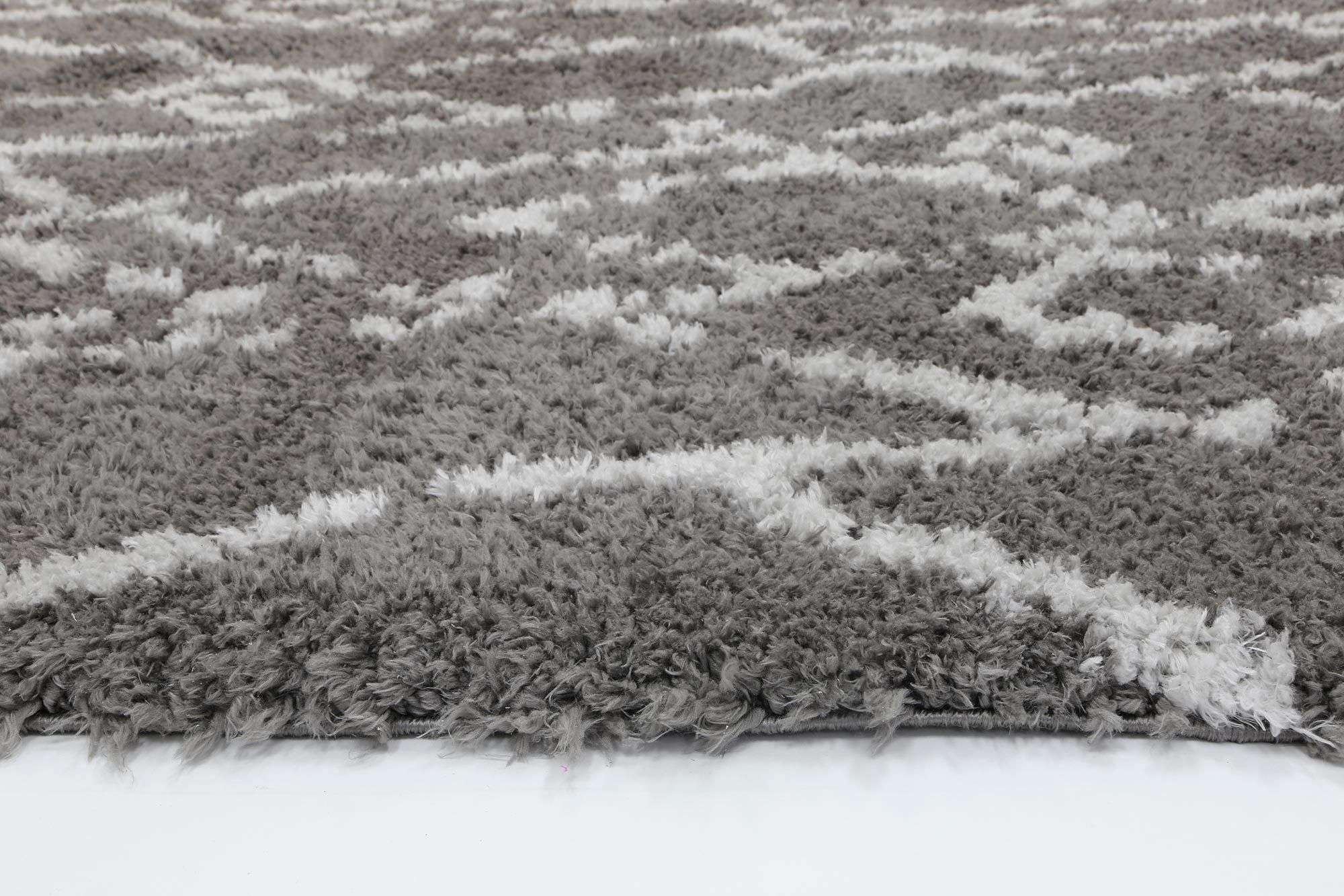 Moroccan Tribal Fes Pattern Grey Silver Rug