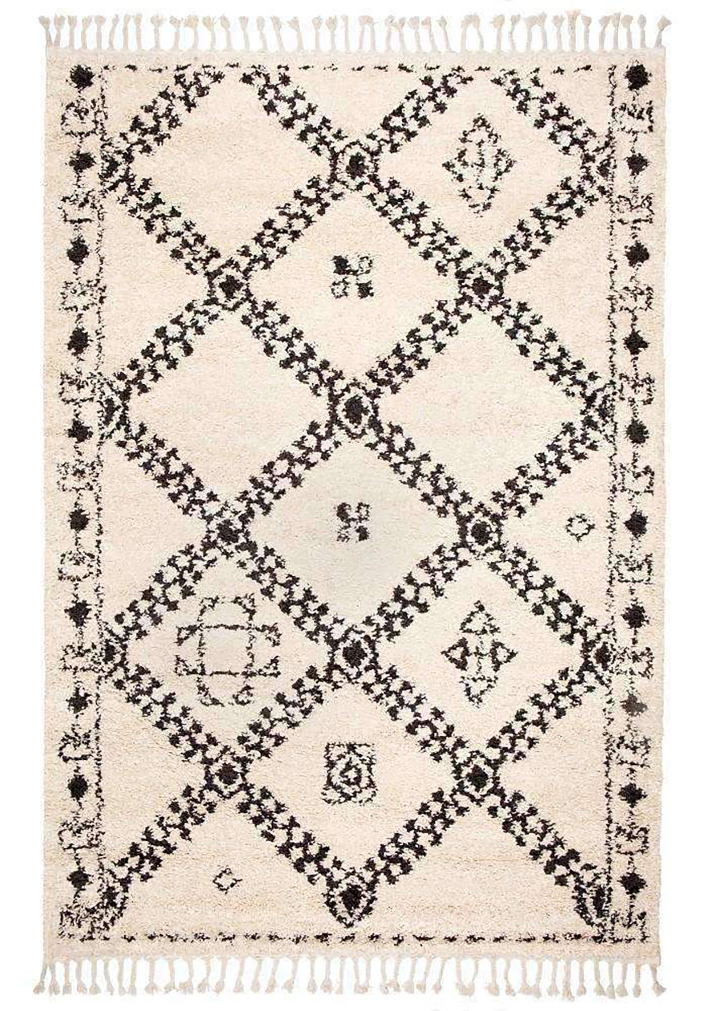 Moroccan Tribal Patterns Cream Graphite Tangir Rug
