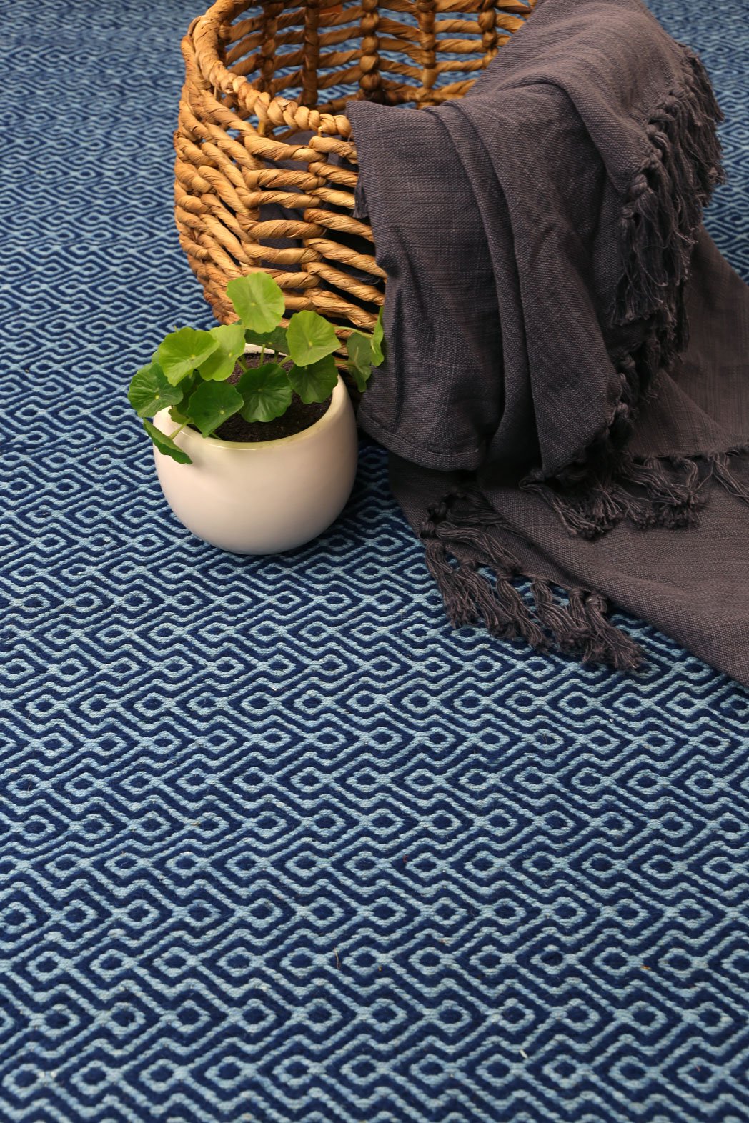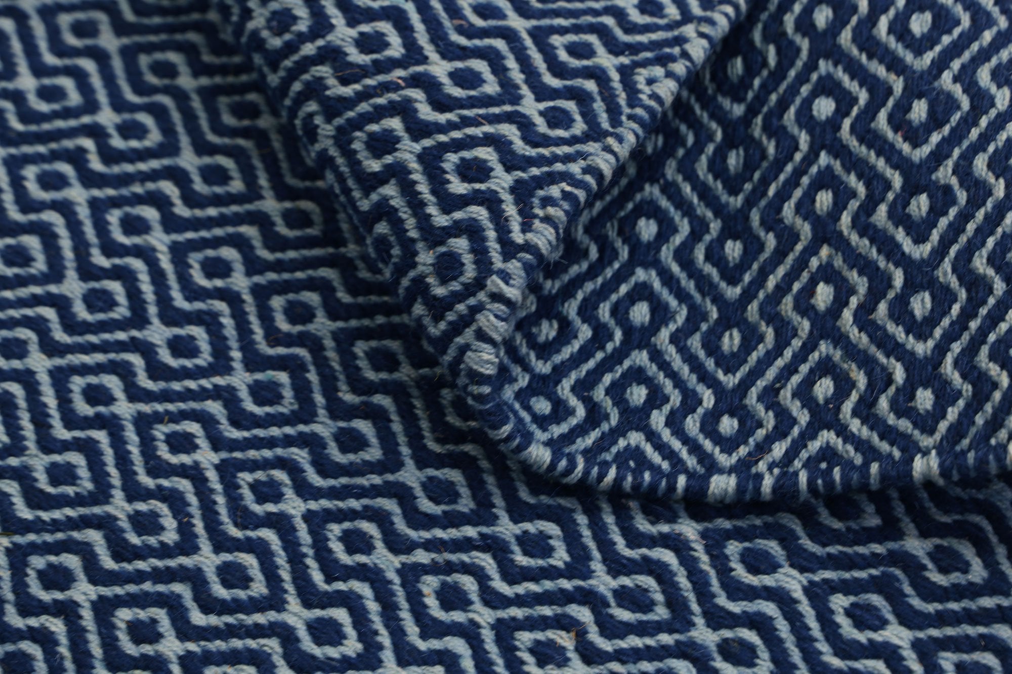 Myra Natural Wool Navy Blue Diamond Rug