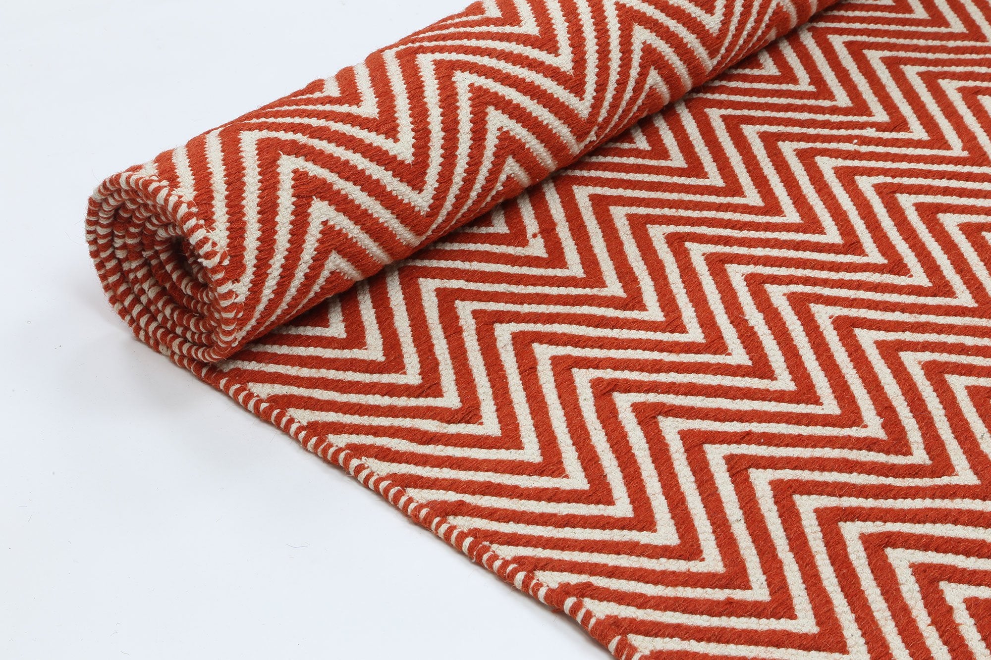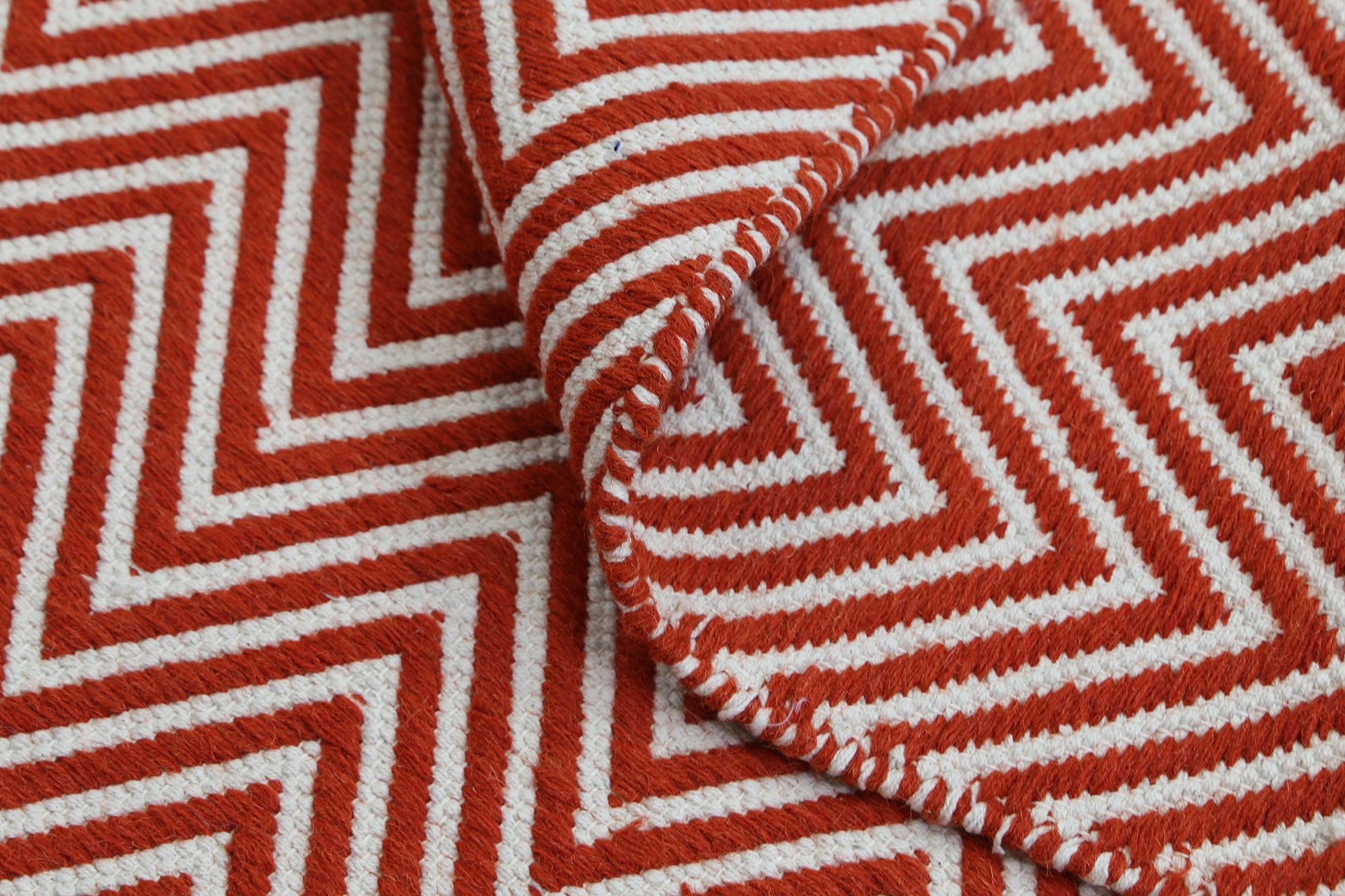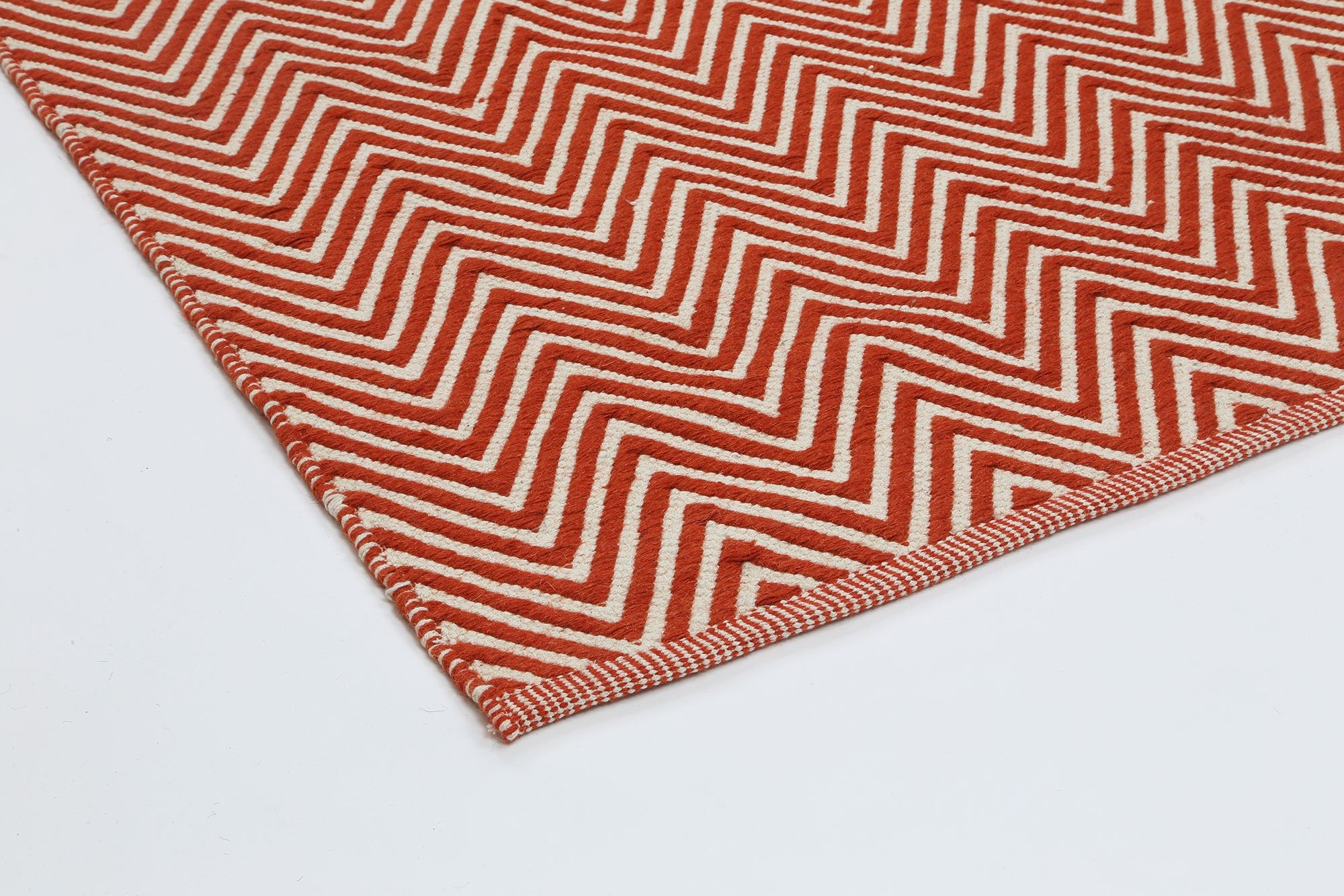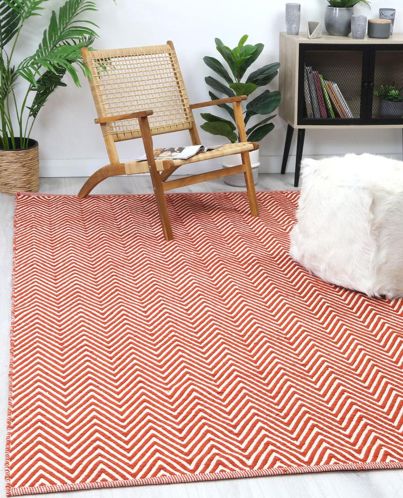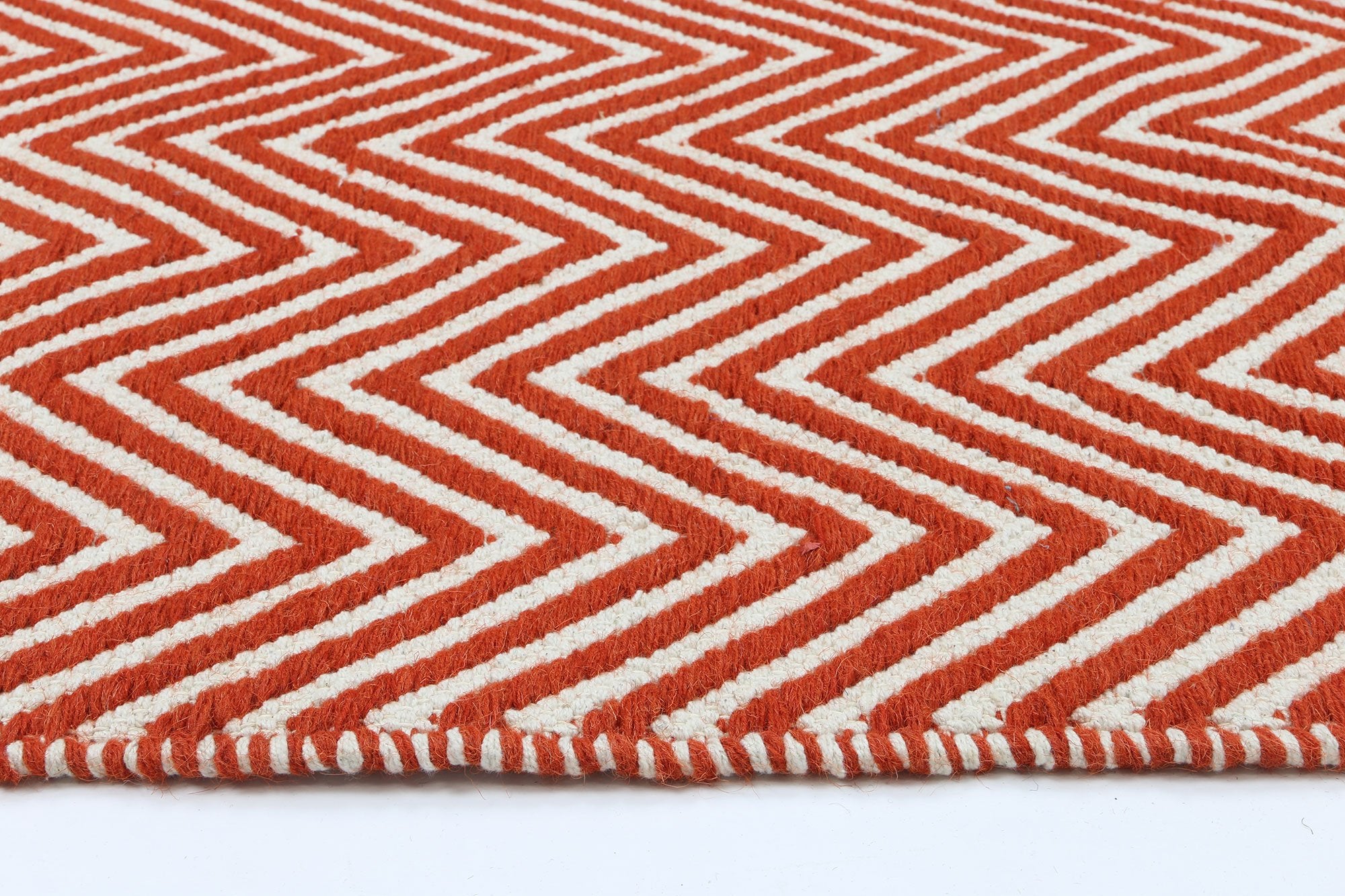 Myra Natural Wool Orange Red Chevron Rug