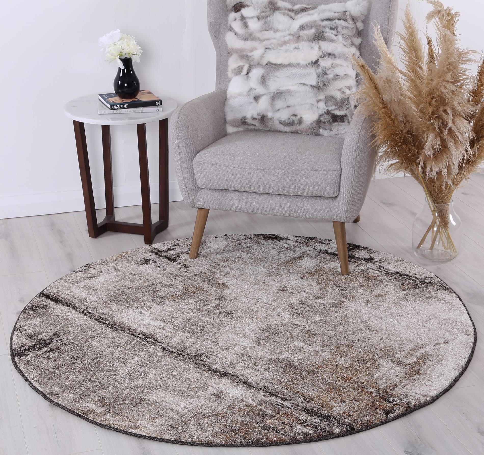 Rio Raw Beige Grey Round Rug
