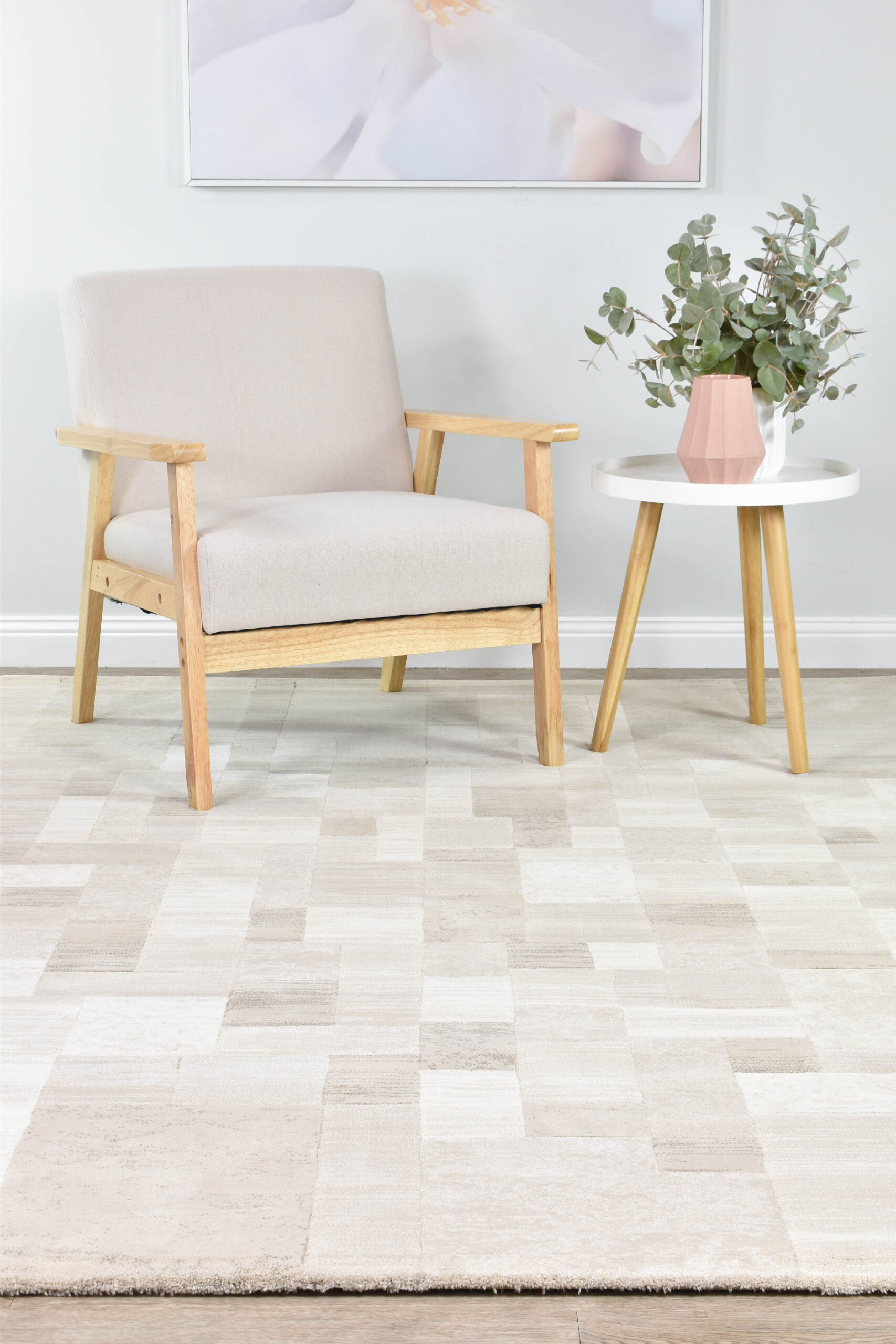 Zenith Washed Neutral Beige Patchwork Rug